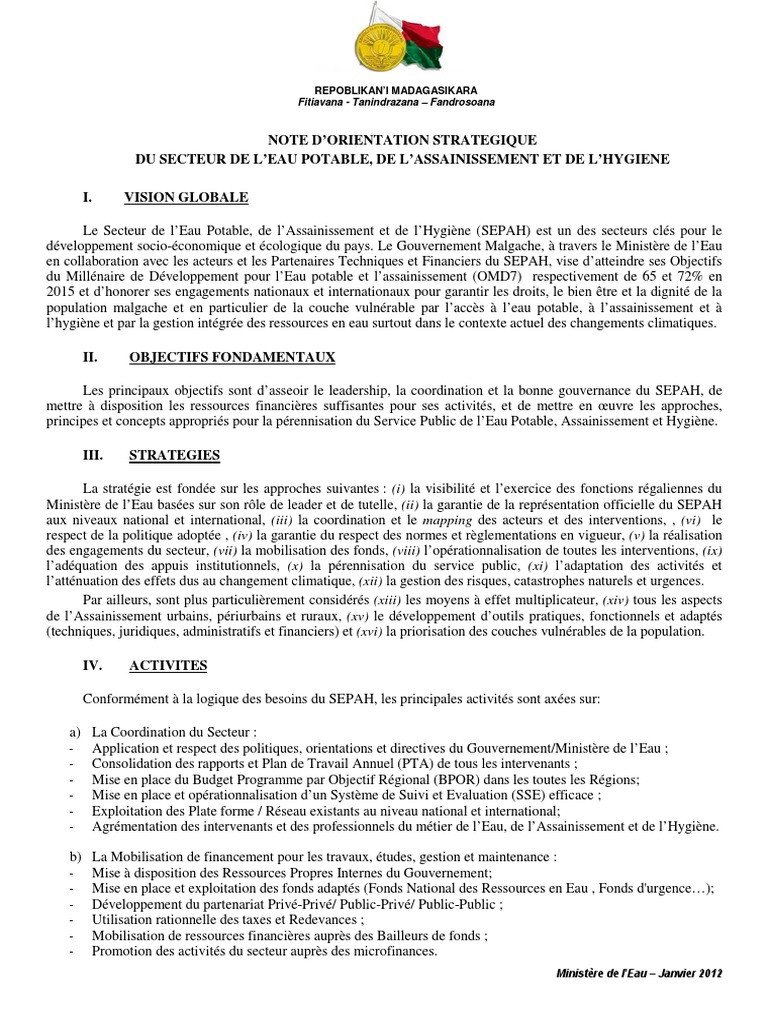 Note dorientation strategique du secteur de leau potable de - www.scribd.com