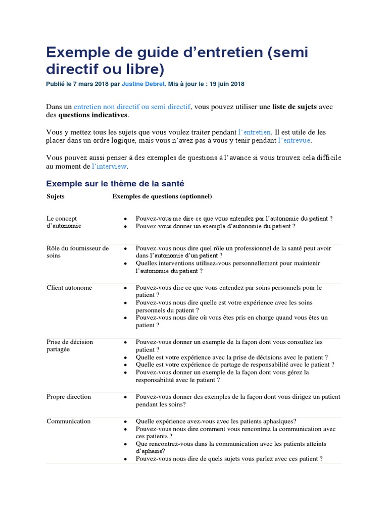 Exemple guide entretien semi directif le meilleur exemple - meilleurexemple.blogspot.com