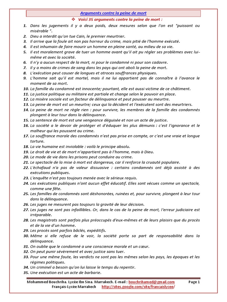 Texte argumentatif sur la peine de mort almlfat bak dok - www.bacdoc.ma